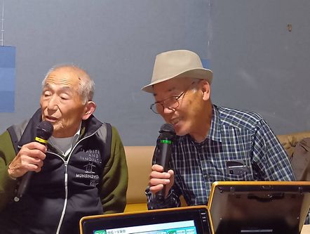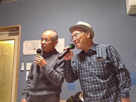 右は二野屏幸雄君は、どこに行くにもカメラを持っていく人で、おかげでこのホームページも賑やかになれた。二野屏君はギターが好きで、当時私の弾いたものを録音をして、今でも持っているとか。